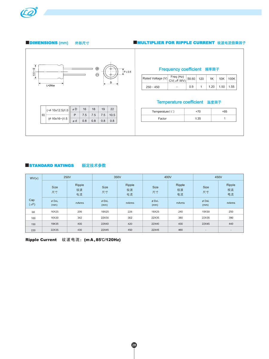 High-frequency low-impedance electrolytic capacitor 220uF 50V