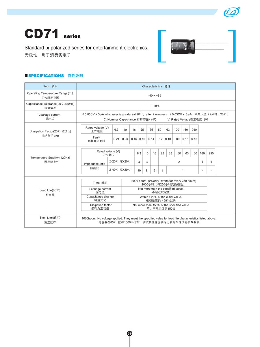 Bi-polarized electrolytic capacitor 2.2uF 50V